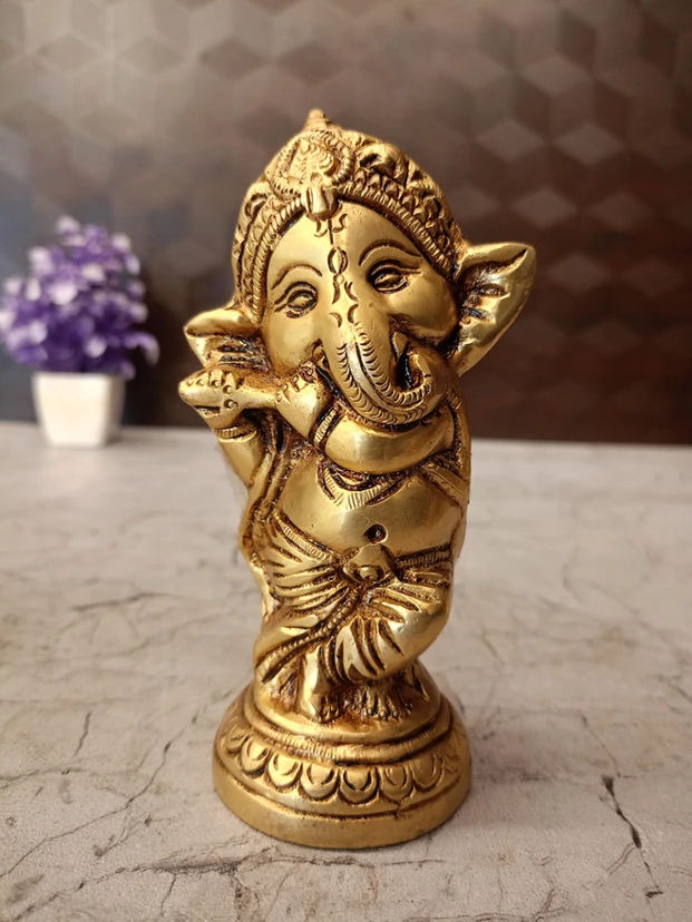 The Brass Baby Ganesha Idol 5.5 inch has a compact height, making it ideal for small spaces like pooja rooms and desks.