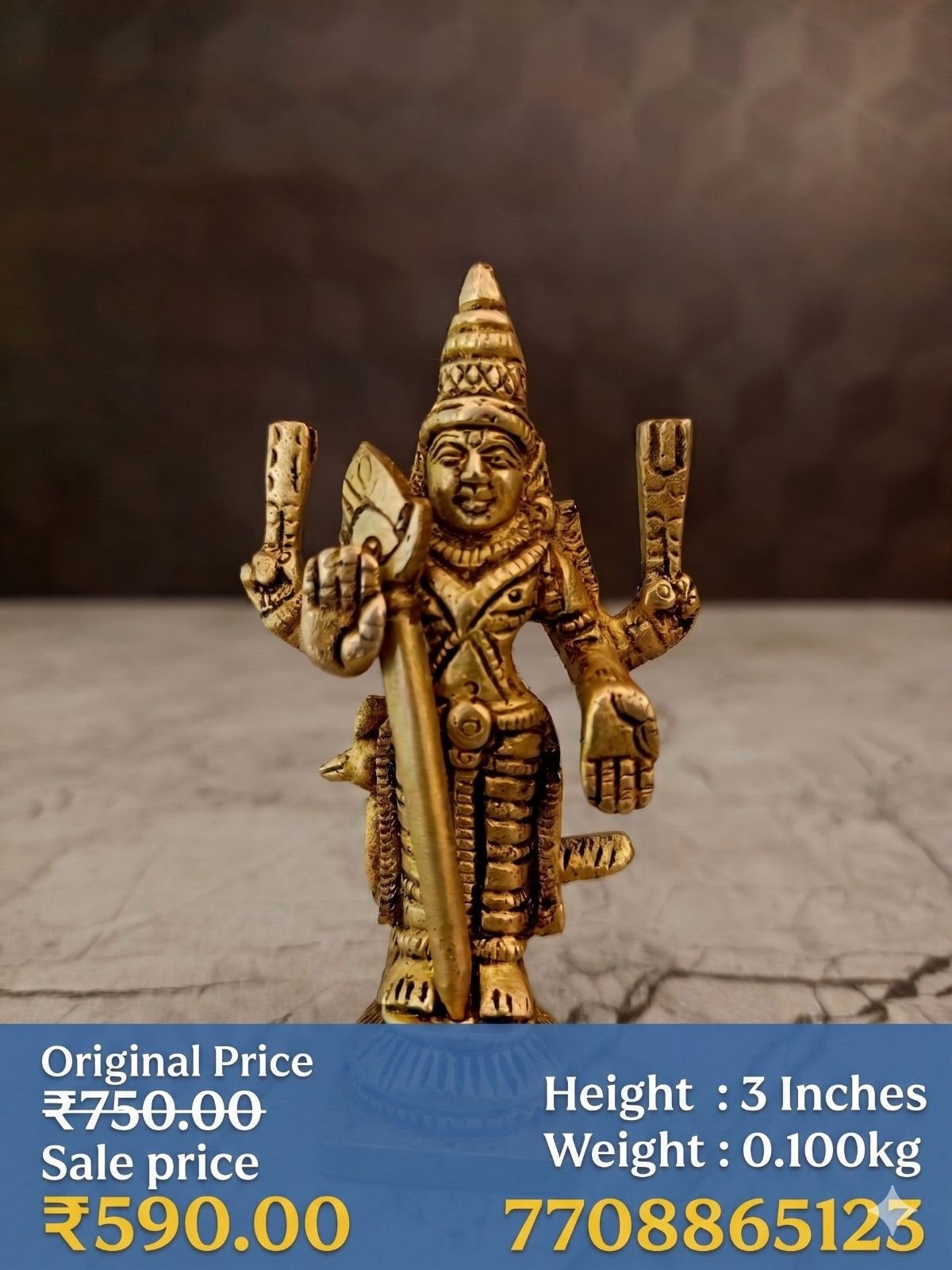 This idol is especially ideal for daily pooja rituals, festive occasions like Thai Poosam, Skanda Sashti, and other spiritual ceremonies. Its compact 3-inch size makes it easy to place anywhere while still maintaining strong spiritual presence.