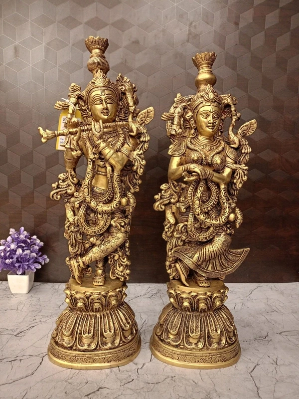Looking to buy brass Radha Krishna statue online that reflects devotion, luxury, and traditional craftsmanship? This Superfine 21-inch Brass Radha Krishna Idol is a masterpiece designed to bring divine blessings and timeless beauty into your home.